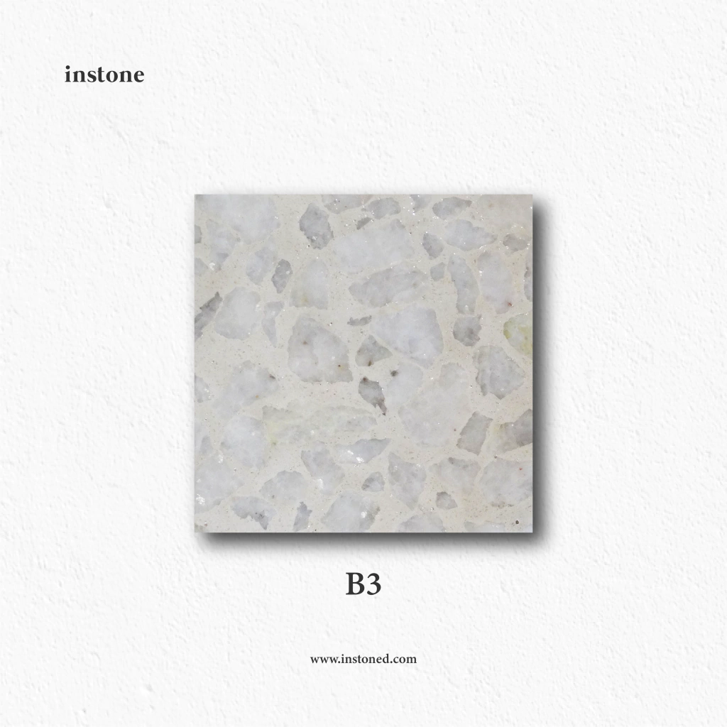 Los terrazzos Instone están protegidos con laca poliuretánica, formando una capa protectora que impermeabiliza el material. Para preservar su apariencia y durabilidad, se recomienda evitar el contacto prolongado de sustancias ácidas como vinagre o limón, químicos y solventes fuertes como acetona o aguarrás, y materiales abrasivos que puedan rayar la superficie. Para su cuidado general, se aconseja limpiar regularmente con detergentes o ceras de ph neutro.